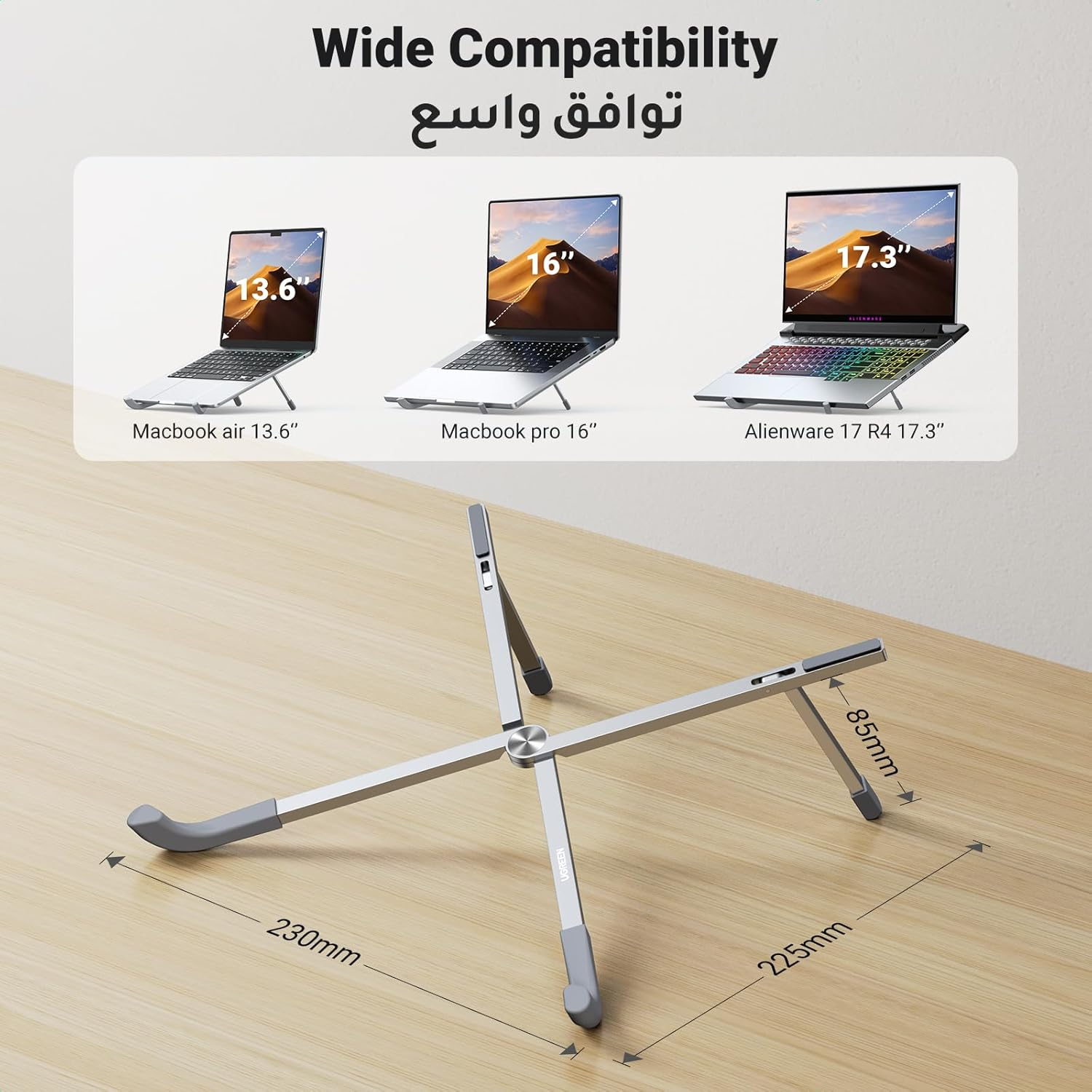 UGREEN Portable Laptop Stand For Desk, Foldable Adjustable Laptop Holder Eye-Level Ergonomic Lightweight Notebook Stand Compact Universal Fit For 11-17" Laptop, Gray | 15622