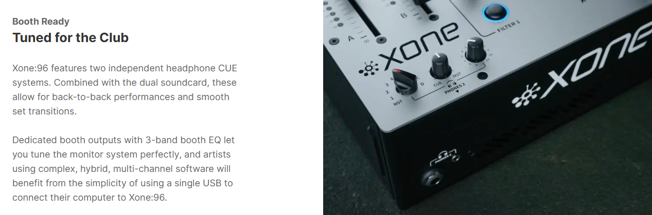 Dual Headphone Cue (A/B): Ideal for back-to-back DJ sets.