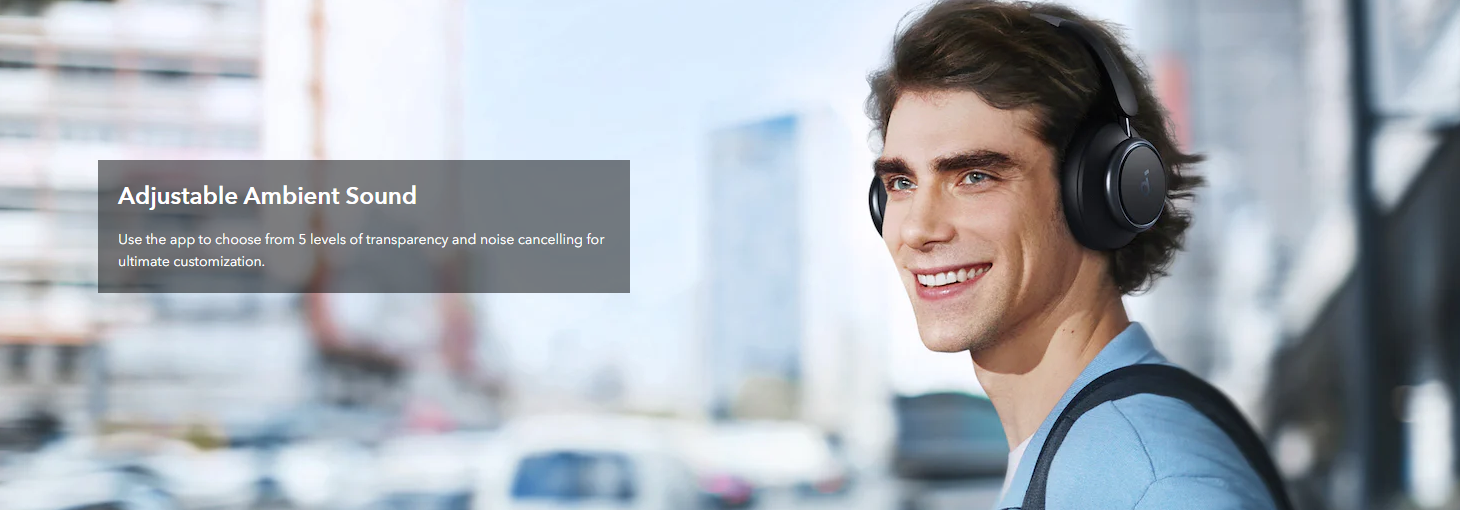 Anker Space Q45 Headphones, Ultra-Wide 3-Stage Noise Cancelling System, Adjustable Ambient Sound, Double-Layer Diaphragm, Bluetooth 5.3 Connectivity, Black | A3040