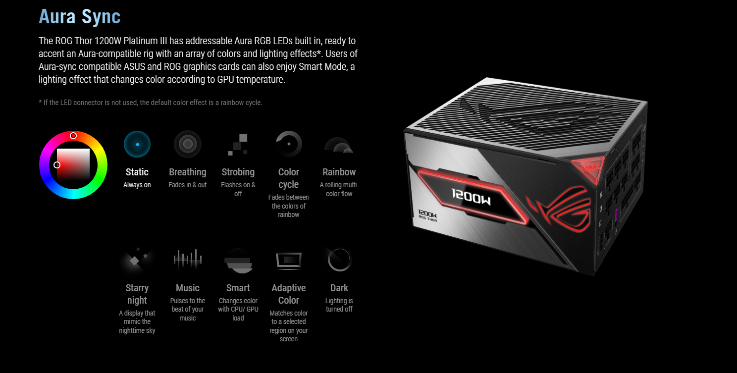 ASUS ROG Thor 1200W Platinum III Fully Modular Power Supply, 80 PLUS Platinum Efficiency, Active PFC, ATX 3.1 Standard, Cybenetics Lambda A++ Certification | 90YE00V2-B0NA00