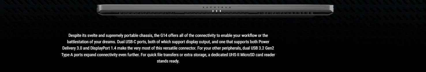 I/O Ports | 1x HDMI 2.1 FRL, 2x USB 3.2 Gen 2 Type-A, 1x USB 3.2 Gen 2 Type-C, 1x USB 4 Type-C, 1x 3.5mm Audio Jack, 1x microSD (UHS-II) |