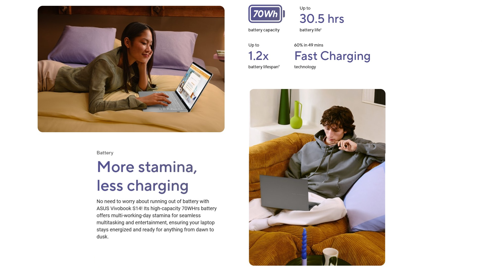 MyASUS Features | System diagnosis, Battery health charging, Fan Profile, Splendid, Tru2Life, Fn lock, WiFi SmartConnect, TaskFirst, Live update, ASUS OLED Care, AI Noise Canceling |