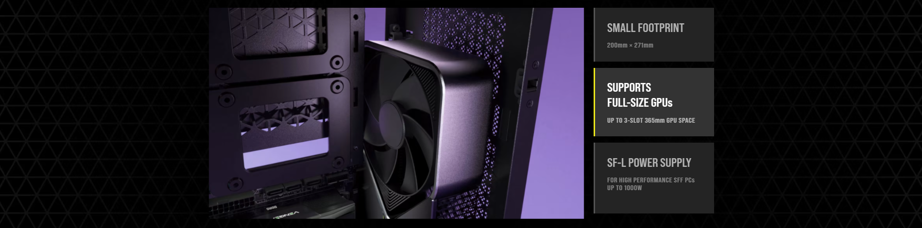 Compact Mini-ITX Design: 24.4L small-form-factor case (271mm x 200mm x 450mm), ideal for space-saving builds