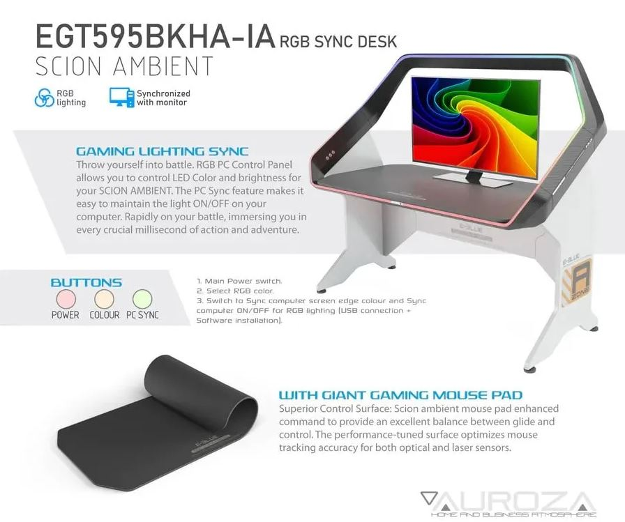 E-Blue Gaming Table, IA Scion Ambient, Sync With Monitor Color Displaying, Identical e-blue Design, Lighting Sync with PC On/Off, 1.65m Wide, Support Max 43" Monitor, White- Black | EGT595BKHA-IA