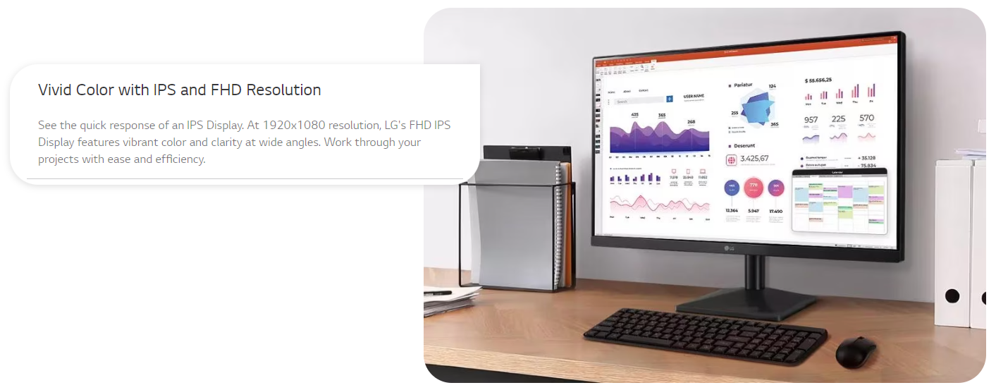 LG 24MR400 3-Side Borderless Monitor , 23.8" FHD IPS Display, 100Hz Refresh Rate, 5ms Response Time, AMD FreeSync Technology, D-Sub / HDMI / 3.5mm Audio Port, Black | 24MR400