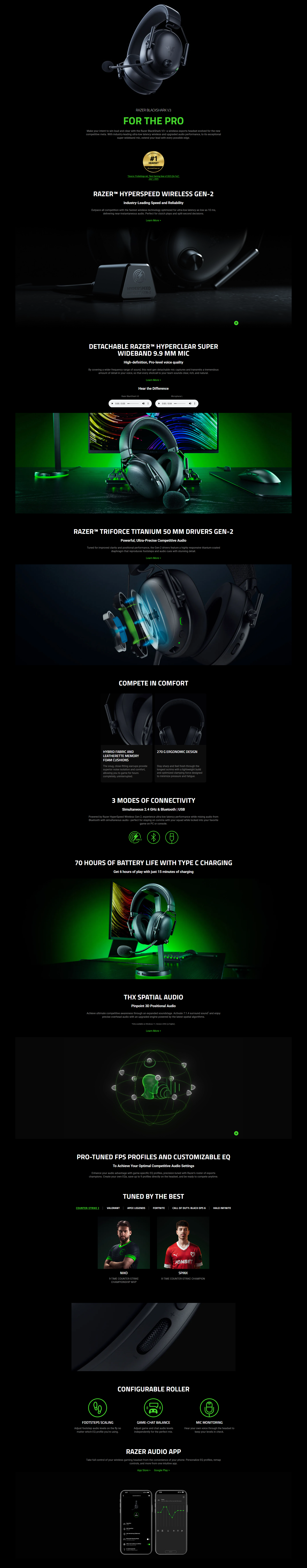 Industry-leading ultra-low latency wireless with Razer HyperSpeed Wireless Gen-2 technology delivering latency as low as 10 ms for near-instantaneous audio.