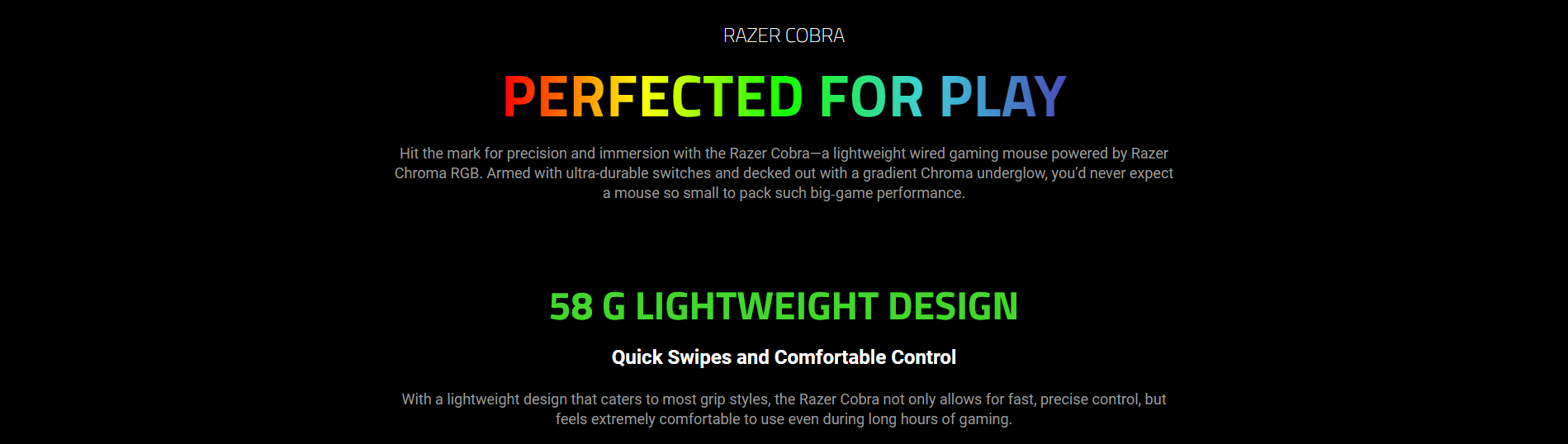 Razer Cobra Gaming Mouse, Wired-Razer Speedflex Cable, 8500 DPI Optical Sensor, 6 Programmable Button, Optical Mouse Switch Gen-3, 100% PTFE Mouse Feet, Black | RZ01-04650100-R3M1 / RZ01-04650100-R3U1