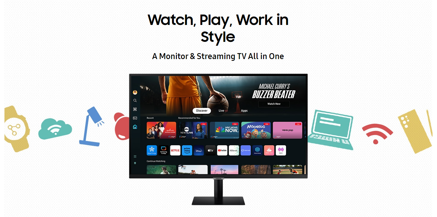 Samsung M7 M70D Smart Monitor, 32" 4K UHD VA Display, 60Hz Refresh Rate, 4ms (GtG) Response Time, WiFi 5 & BT 5.2 Connectivity, Built-In Speakers, Tizen Operating System, White | LS32DM703UMXUE