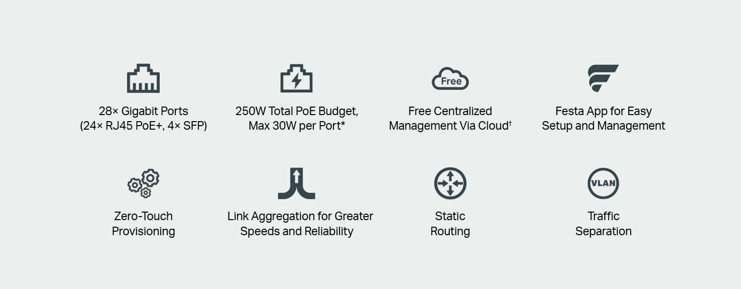 Brand: TP-Link|Category: Network switches|SKU: 10303|Model: Festa FS328GP