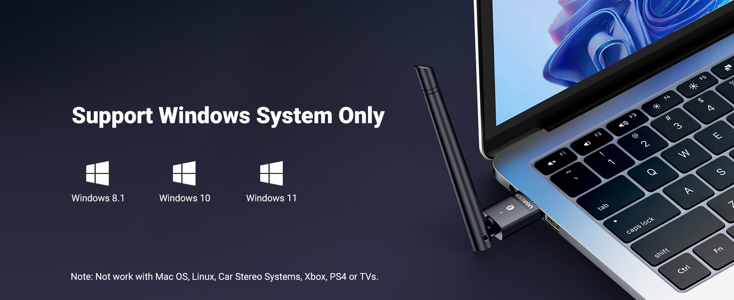 Easy Plug & Play - Windows 11/10/8.1 plug and play. Just plug this Bluetooth usb for laptop into your computer/laptop, then you can connect it in the settings and use it directly, saving your time from complicated setup. This Bluetooth dongle for PC only supports Windows 11/10/8.1 and does not support other computer systems and other versions of Windows.