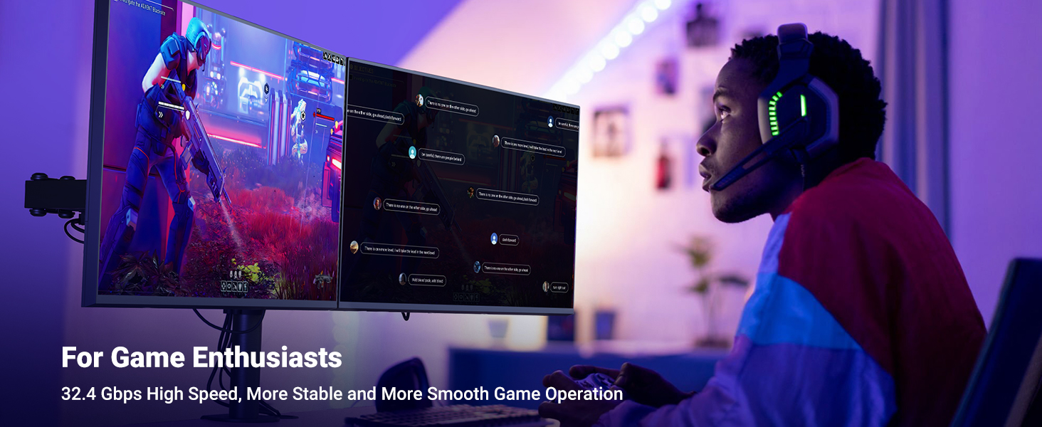 UGREEN DisplayPort cable not only can support 3D video, but also can support the resolution up to 8K 7680x4320@60Hz, 4K 3840x2160@144Hz and 2K@165Hz, ideal for doing high-performance gaming or watching an HD movie on your television. It is the optimal choice for large games, home theater and splicing-screen display advertising.